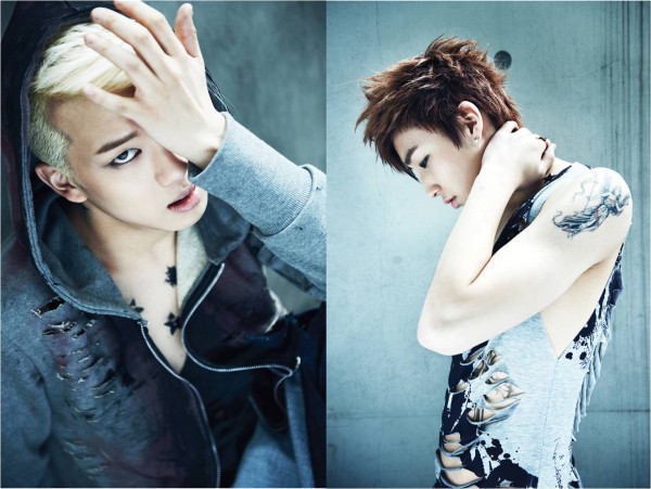 Similar to Bang Yongguk, Himchan, Zelo and Daehyun, Youngjae and Jongup showed off their new mysterious and powerful ‘Homme Fatale’ image. Both members can be seen decorated with black tattoos on their bodies and donning new hairstyles.