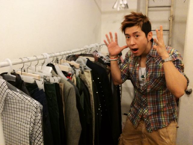 Three hours ago, popular solo artist Brian Joo tweeted a photo for his followers. In the photo, a large rack of clothing consisting of various styles of pants, jackets and shirts was shown. And on the side, Brian can be seen with an exaggerated and shocked looking expression.