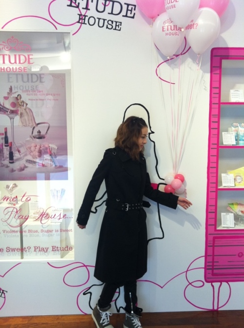 On October 24th, she uploaded the photo above on her me2day and said, "Now even in Japan~! Wanna be sweet? Play~ Etude!!! ^_^ Let’s go~ to the Shinjuku store. Congrats on the opening of the Japanese Etude Store! Clap clap clap!!!"