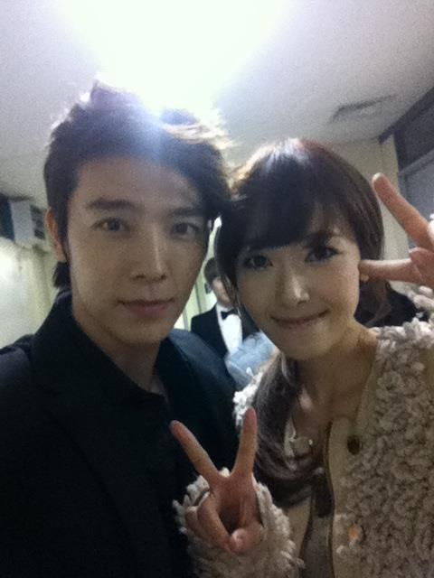 He is seen posing with SNSD's Jessica in the photo above.He thanked Jessica for congratulating Super Junior for winning on Seoul Music Awards yesterday,both of them pose cutely in the photo above.