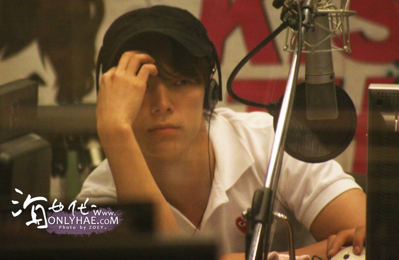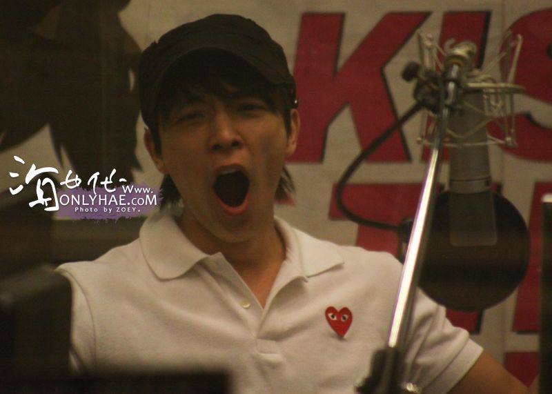Donghae recently visited Kiss The Radio as a guest and i guess it got him bored. I guess siting in a chair and in radio show for hours get get boring O_o;;