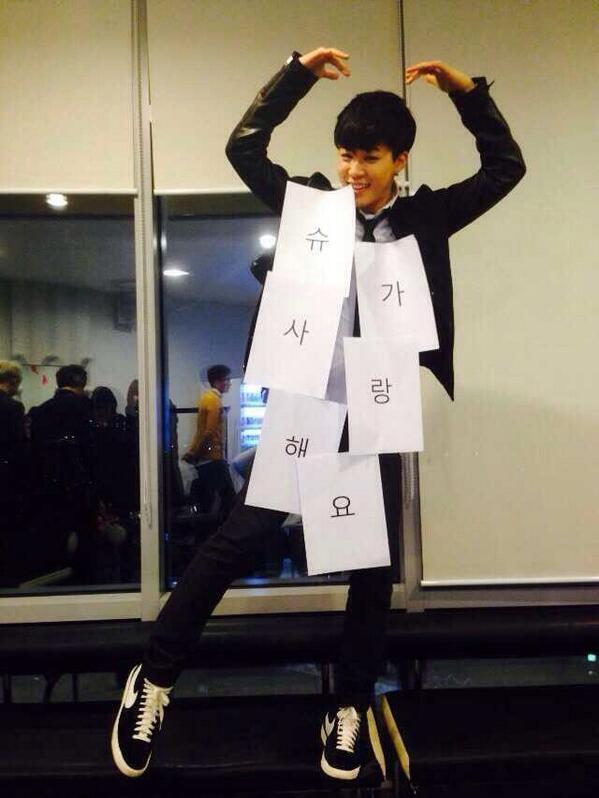 From BTS_Jimin : 슈가형 오늘 생일 진심으로 축하드려요~~^^ 씬난닷~><