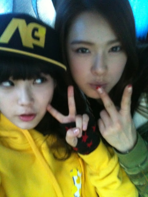The photo above is taken from her Me2day,she shared the selca taken with After School's GaHee during the filming of Heroes.