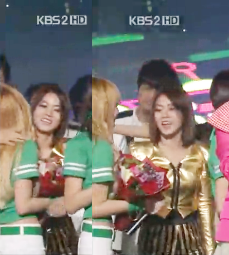Another caught on cam moment by sharp eyes fans where they spotted SNSD's Jessica and T-ara's So Yeon shared a hug on the show.