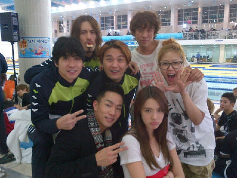 She said,"Idol Swimming Competition …this is Old-dol…Shinji was whining bc she’s w/o makeup – anyway where did Kim Jungmin oppa go to…"
