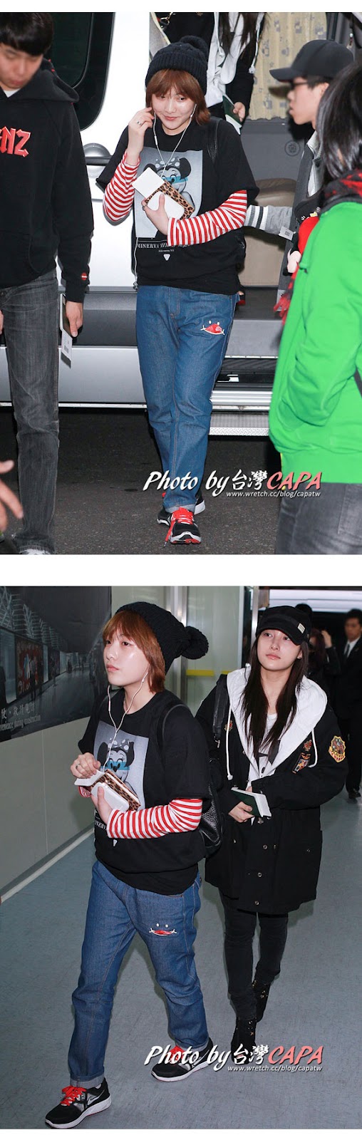 Recently, KARA'S Jiyoung was spotted at the airport arriving in Taiwan for their overseas schedule and she is causing quite a stir among netizens this time its because of her airport fashion. She arrived in the airport taken photo's by fans and media alike and she showed off her odd airport fashion.