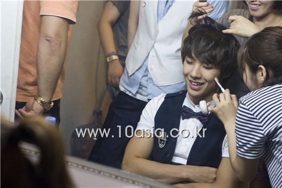 Boy band MBLAQ member Lee Joon gets his make-up done for a recording for music cable channel Mnet's program "Celebrity Goes to School with MBLAQ and Suro Kim."