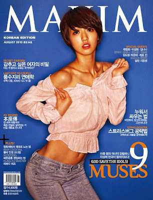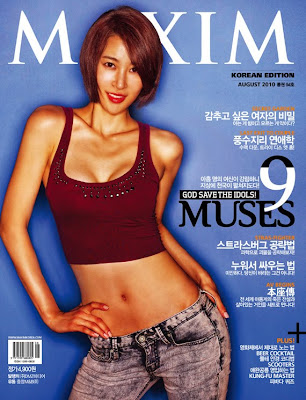 Despite not having debuted yet, Nine Muses has already made quite the impression. They recently graced the August issue of Maxim Korea. The member's are all relatively taller than average Korean women also with each member having superb body figure and pretty faces.