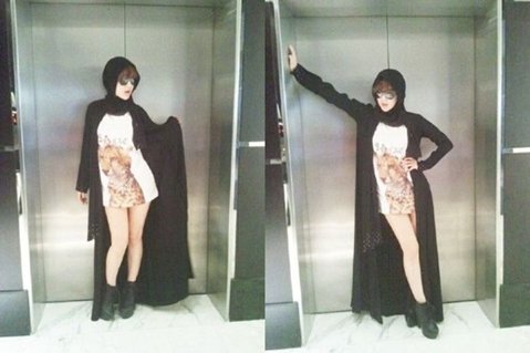She is seen wearing Abu Dhabi's traditional clothes together with mini dress,any comment for her wearing style?