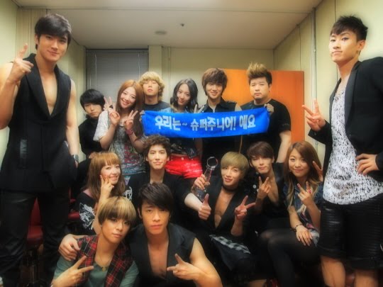 It seems that this photo was taken at the backstage of Music Bank judging from their outfits.Amber and Dong Hae caught my attention the most,look at Dong Hae's hand,Amber and Dong Hae look so much like buddies here!