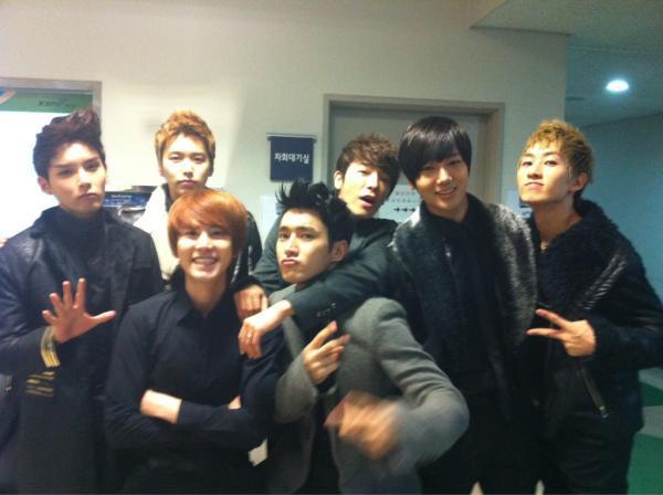 The members of Super Junior posed together at the backstage of MBC Gayo Daejoon.