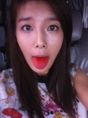 She is showing her reddish tongue in the photo above,showing her hilarious expression and tremendously red tongue.