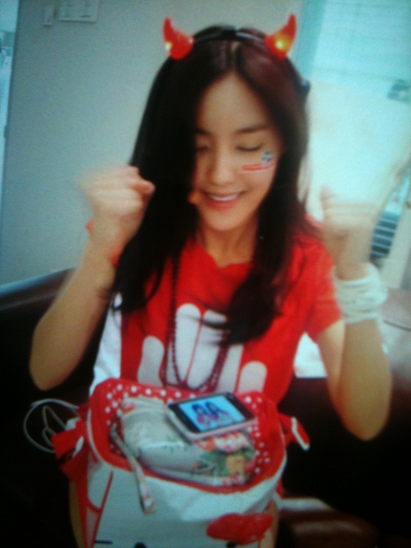 Hyomin has just twitted this pic a while ago saying "Republic of Korea Fighting! ^ O ^", Korean idols are really showing their full support to the Korean team 'Red Devils' and T-Ara is definitely one of them.