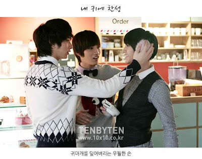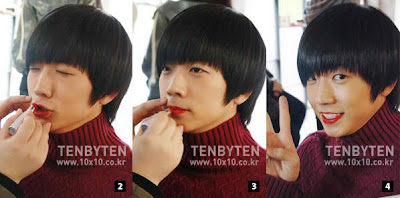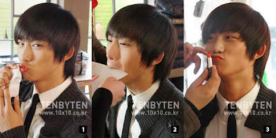 Another set of 2PM "Kiss Me" 10x10 Polaroid photos, and some of the members in lipstick?