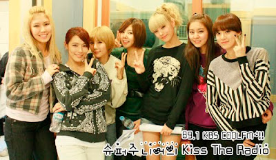 The girls took a photo of Super Junior's Eun Hyuk and Lee Teuk,the duo seemed to be happy to see After School on the radio show.