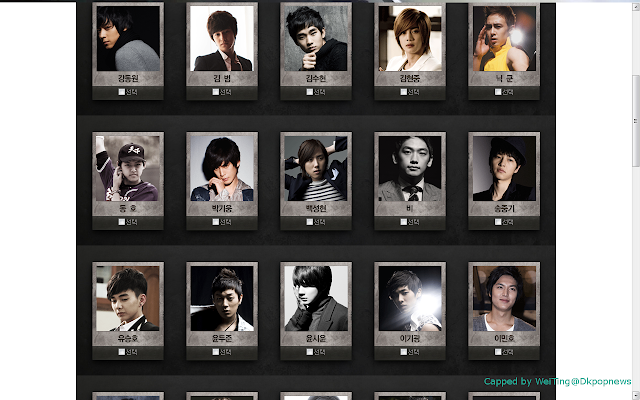 Kang Dong Won, Kim Bum, Kim Soohyun,Kim Hyun Joong, Nickhun, Dongho, Park Ki Wong, Baek Sung Hyun, Rain, Song Joongki, Yoo Seungho, Yoon Doo Joon, Yoon Shi Yoon, Lee Ki Kwang, Lee Min Ho, Lee Seunggi, Lee Joon, Lee Hyun Woo, Jang Geun Suk, Jae Bum, Jung Yong Hwa, Thunder(MBLAQ), Choi Daniel, Choi Minho, Choi Siwon, Lee Taemin, Tae Yang, Ok Taecyeon, Hyun Woo, TOP.