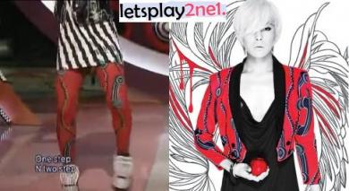 Here is another example of YG's Love,as you can see,the leggings on the left has the sam design with GD's jacket that he used for his album's cover,Minzy really looks hot with that leggings on,but is she as hot as GD??