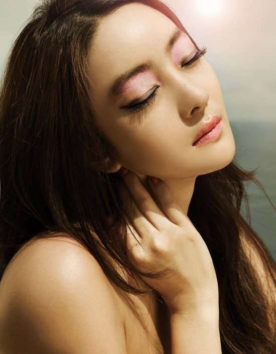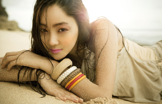 The photoshoot was carried out in Bali.Seo Hyo Rim poses with water and sand to appear as a healthy "Goddess Of The Sun".