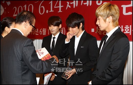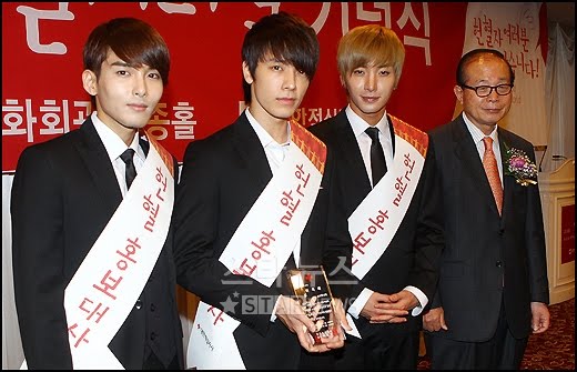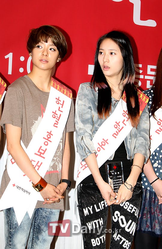 Girl Group f(x) and Super Junior has been appointed as ambassadors for Red Cross "World Blood Donor Day" celebration. f(x) and Super Junior members Ryeowook, Donghae and Leeteuk were present at the celebration day on the 14th at Sejonghol.