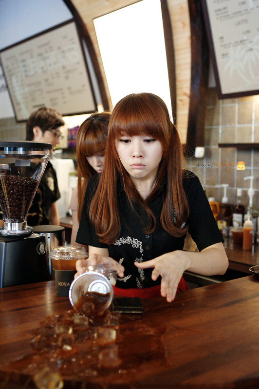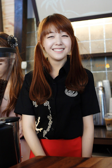 Girl's Day's members became one day Barista for Kona Beans last week.Minah smiles happily as shown in the photo,can you imagine her shocked expression?
