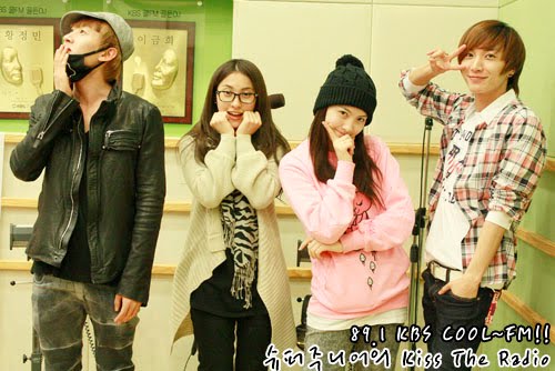 During the recording of the latest episode of Sukira,as usual Ji Young and Gyuri of KARA were present at the scene together with Super Junior's Lee Teuk and Eun Hyuk.