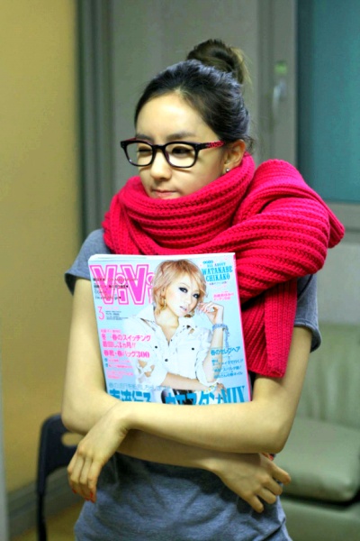 The photos that caught my attention the most are the photos where she wear glasses,if you observe carefully,she is holding a japanese magazine,maybe she knows japanese language,i have no idea!