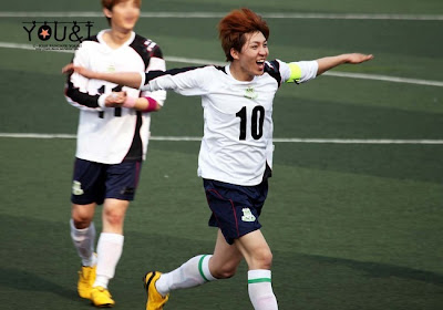 Are you curious to know who is the number 10 of MTV's Idol United?That person is none other than U-Kiss Soo Hyun,he looks so fine in the jersey,i think he is the captain of the team as he is the only person with an arm band.