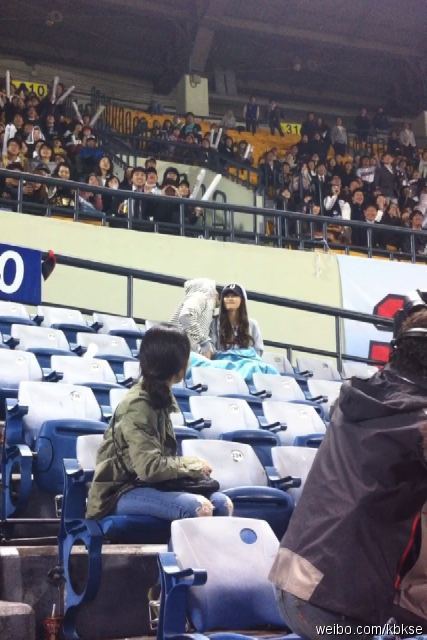 Both of them were invited to open the pitch for a baseball match recently and fans spotted that Nichkhun kissed Victoria on her chin,check out the photos above.