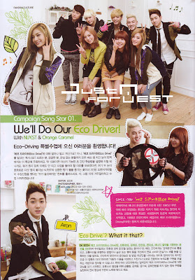 Sub unit Orange Caramel and rookie group Nu'Est are both featured in Inkigayo magazine. They seem having fun together.