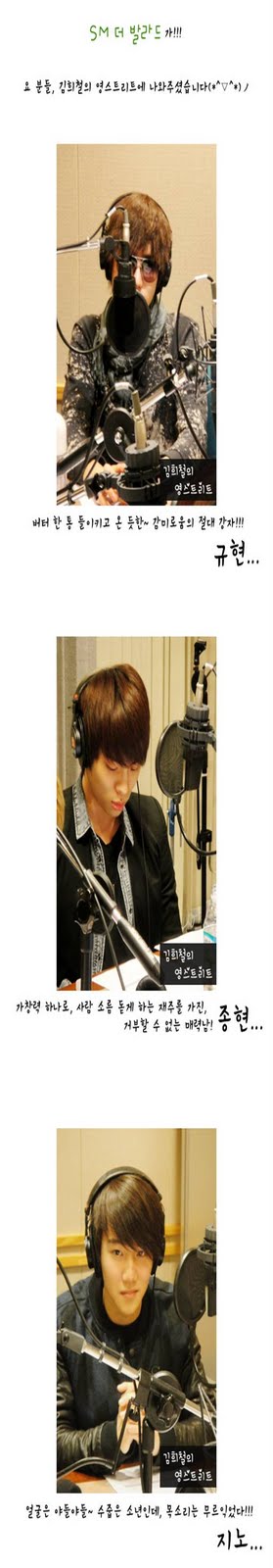 Previously, SM The Ballad were guests for Park KyungLim's Starry Night Radio. SM The Ballad also went to Heechul's Youngstreet Radio on 15 Dec 2010.