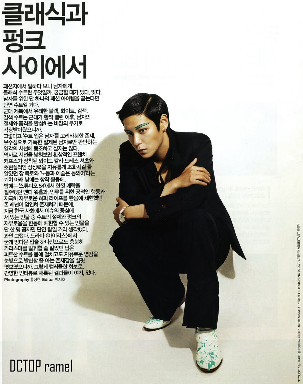 [Pictures] TOP poses for Arena! Big BangDKPOPNEWS OfficialJun 21, 2010 Share 0 comments Big Bang's TOP who has just released new song "Turn It Up" poses for Arena!TOP is showing us that he looks good whatever hair colours.He looks like the baddest male in Seoul here,what do you think?Photos credits to BBVIPZ! Tags: Big bang, Kpop, Pictures, Top Share Previous articleNext article Leave a comment Name Email Content Post comment