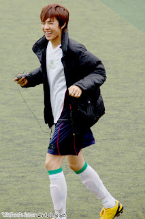 After seeing some photos of MBLAQ's members on the pitch yesterday for the shooting of Idol United,now we have a few photos of U-Kiss boys on the pitch!