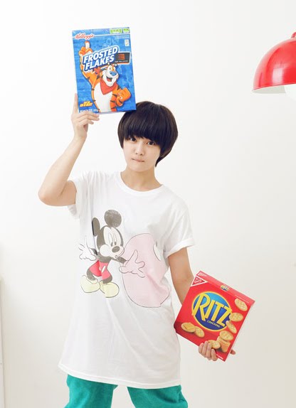 These cereals and biscuits plus Mickey Mouse's shirt makes Boram look more younger and innocent, is she the maknae of T-Ara? NO! but its really understandable if you have thought so. ^ ^