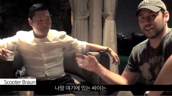 To mark the collaboration between the two great nations, Psy and Scooter Braun made a toast with a shot of soju. The talent manager said, “To PSY. To Korea. To breaking down barriers. To the future. Thanks a lot” before they take a shot and shake hands.