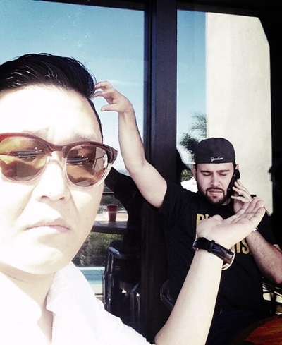 Psy updated his twitter with a photo of him and Scooter Braun, Psy's American manager.