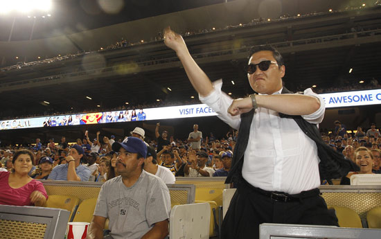 On August 20, PSY watched the game between the L.A. Dodgers and San Francisco Giants from the seats behind 1st base. After the end of the 5th inning, “Gangnam Style” was played across the stadium. The crowd at Dodgers stadium were dancing to the infectious song, when they saw PSY himself on the stadium’s ‘Dance Cam’.
