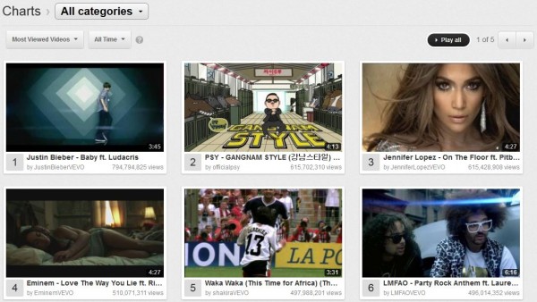 Psy’s “Gangnam Style” has surpassed Jennifer Lopez’s “On The Floor” to become the 2nd Most viewed Video just 12 days since the video rose to No. 3 on October 20. “Gangnam Style” drew 615 million hits as of 9 AM of November 2, while Justin Bieber’s “Baby” remained at No. 1 with 794 million views.