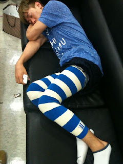 Also, Shindong posted a picture of Eunhyuk in leggings on twitter a few hours before the Usher concert. You can see by his leggings that Eunhyuk is the person on the right. Here's the picture: