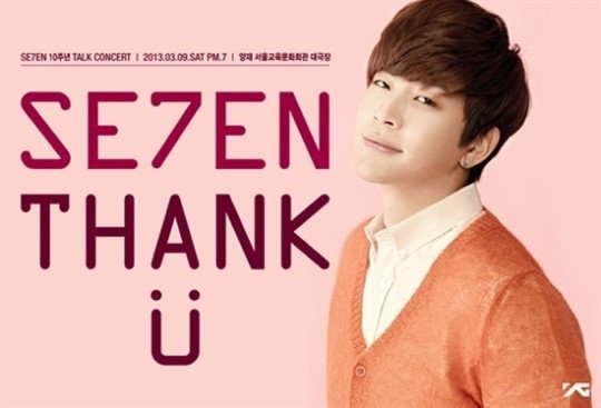 Following the series of concerts in Japan, Se7en will hold his talk concert titled ‘Thank U’ on March 9 in Seoul. He will be singing his much-loved hit songs as well as share precious memories from the past ten years with his fans.