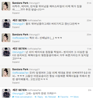Dara: @OfficialSe7en Oh my.. They’ll go wild if you just go all out and be girly hahahahahaha thanks for the advice^_^ ㅋㅋㅋㅋㅋㅋㅋㅋㅋㅋㅋ