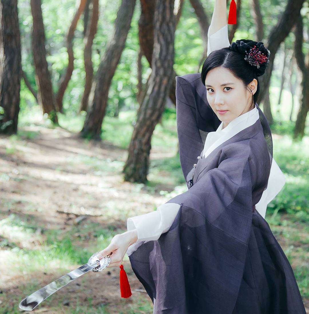 On her instagram, she writes, "this is Woohee.." In the photo, Seohyun is looking majestic in her hanbok and makes a warrior pose. She has a firm yet gentle look in her eyes and looking beautiful as ever.