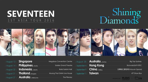 Seventeen Announces Countries For '1st Asia Tour 2016 Shining Diamonds'