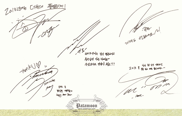 SHINee's greetings in the official 2013 "SHINee Tree" calendar