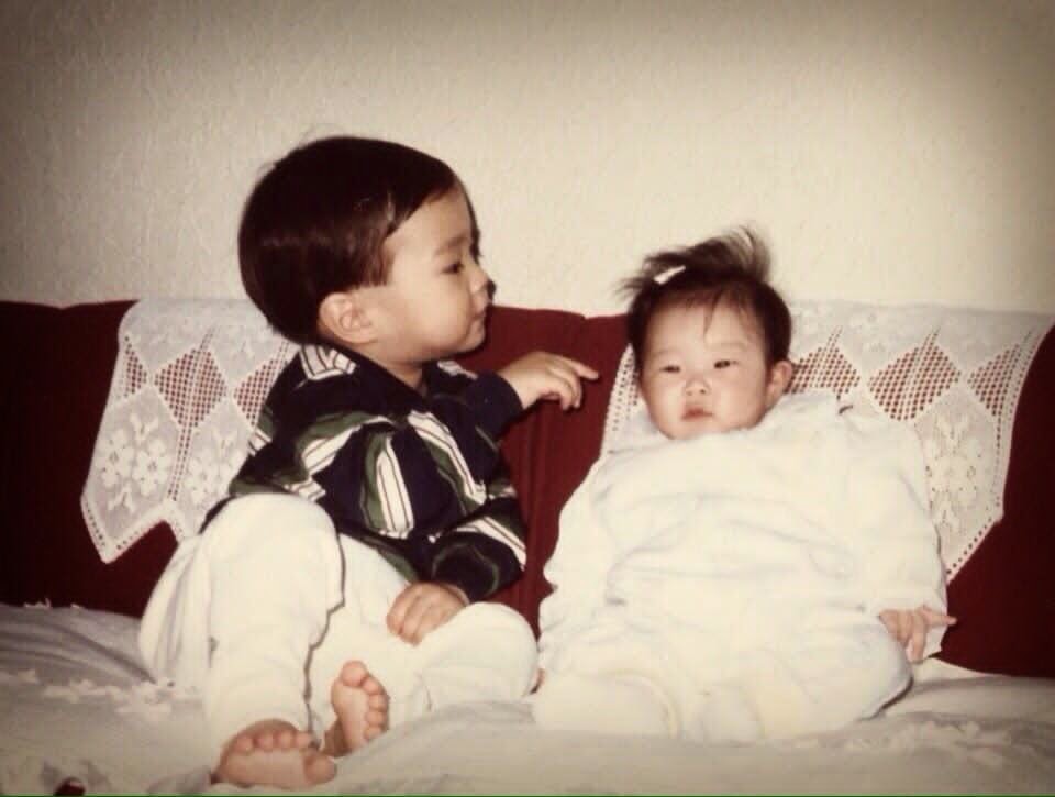 The photo showed the little Siwon and his younger sister Jiwon on a bed. He captioned it with, "Me and my younger sister Jiwon. lol"