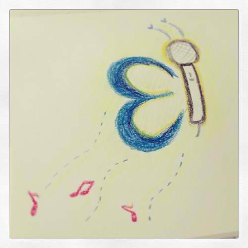 At first look, the photo is like a simple butterfly. But if you'll just pay attention to its details, you'll notice that the body of the butterfly is a microphone, the wings looks like number three, and the wind has music notes.
