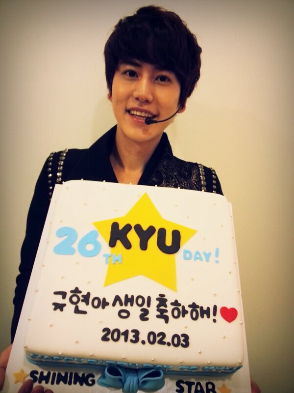 In the photo, he is holding a cute birthday cake with greetings written as 'Kyuhyun-ah Happy Birthday!'.