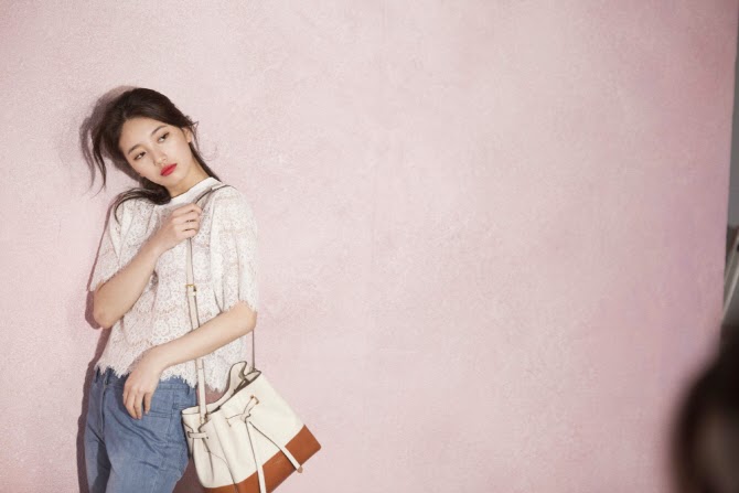 The photos are deemed in pastel pink color as Suzy flaunted her pretty look through various outfits while matching them with suitable bags. The stand out point was her plump red lips make-up, which contributed to her appearance as a sweet date for Valentine's Day.