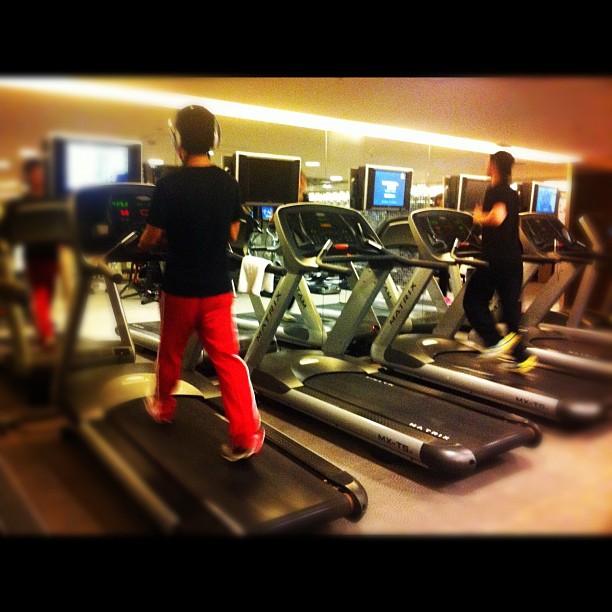 In the photos, you can see the two boys in treadmills with headphones on their ears.