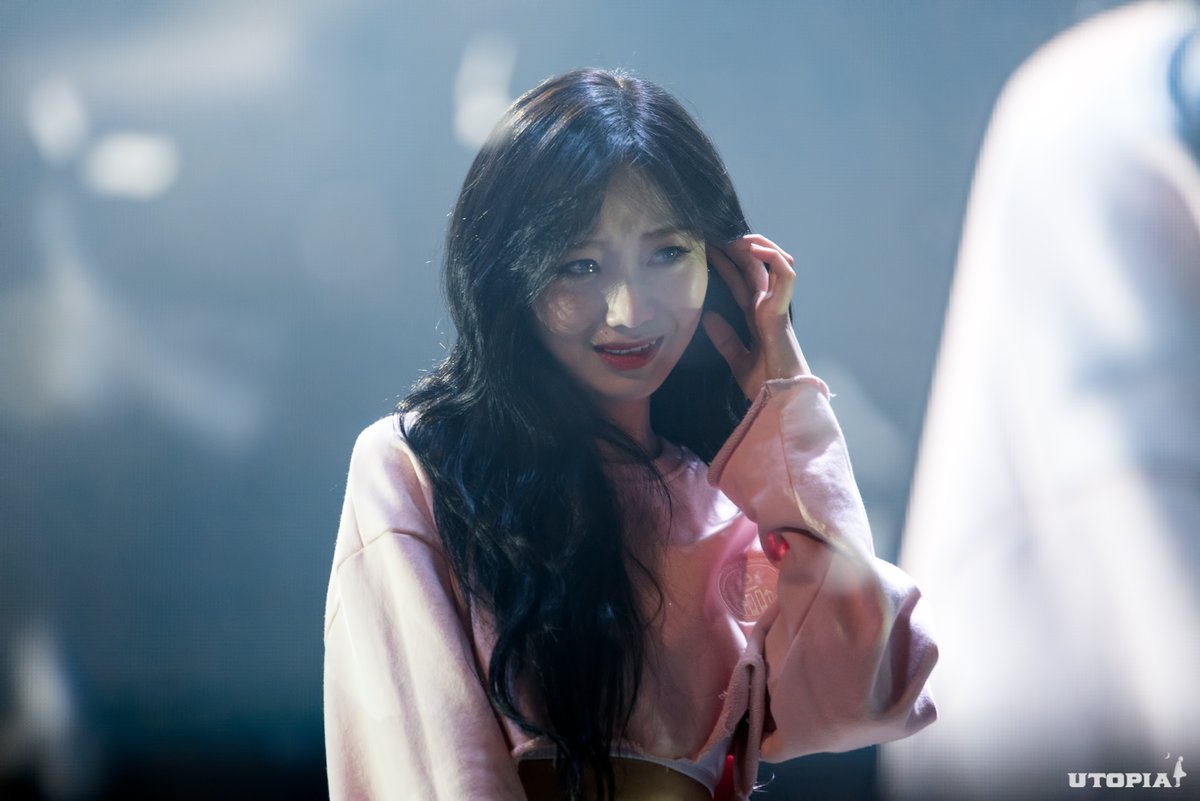 Lovelyz Sujeong is one of the many idols who shed tears at her group's concert. She gets emotional when fans sing along with their hit songs. She still looks pretty even though she's crying, agree?