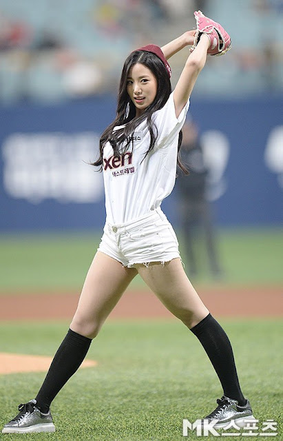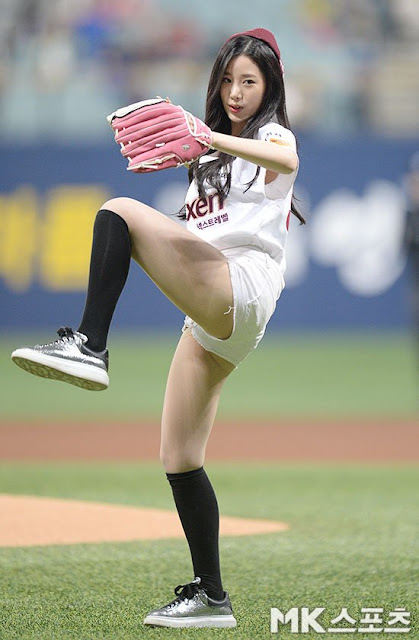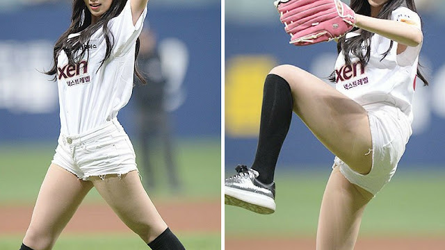 Berrygood's Johyun, who's well-known for her honey thigh, served the 1st pitch for a baseball match on 27th May.